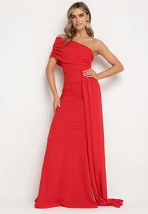 Czerwona Dopasowana Sukienka Maxi z Ozdobnym Trenem Iralia