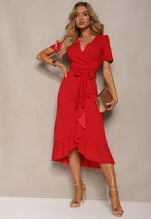 Czerwona Kopertowa Sukienka z Falbanką Caronia