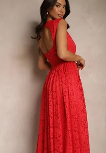 Czerwona Koronkowa Sukienka o Rozkloszowanym Kroju z Odkrytymi Plecami Nelamia