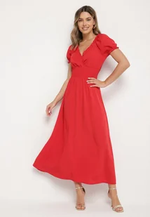 Czerwona Sukienka Ozdobiona Bufkami Dolinossa