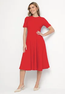 Czerwona Sukienka Rozkloszowana z Taliowaniem Telorwena