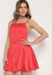 Czerwona Sukienka Vices na Ramiączkach o Fasonie Bombki Folonna