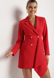 Czerwona Taliowana Sukienka o Kroju Marynarki z Mini Trenem Besista