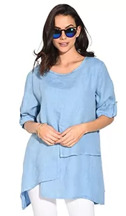 Damska sukienka 100% lniana Made in Italy, Krótka sukienka w paski z dekoltem łódką i pół rękawem, różowa, rozmiar: M, Różowy, M