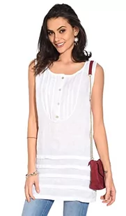 Damska sukienka 100% lniana Made in Italy, krótka sukienka z wiązanym kołnierzem tunezyjskim i falbankami, biała, rozmiar: M, biały, M