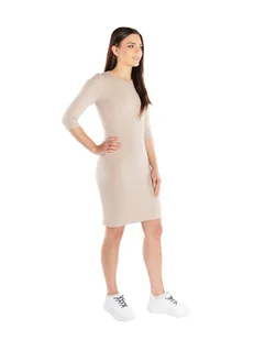 Damska sukienka prążkowana 3/4 Rękaw Midi Niki beżowa Golden Queen r.M