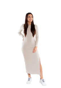 Damska sukienka prążkowana długi rękaw Maxi Niki beżowa Golden Queen r.2XL
