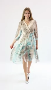 Delikatna sukienka midi w marmurek Sofia Beżowo-turkusowa 36