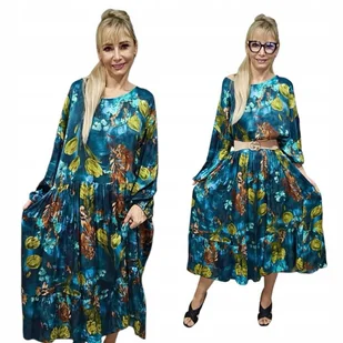 Długa sukienka jedwab kwiaty falbana luźna wyjątkowa turkusowa Sukienka jedwabno-wiskozowa, rozkloszowana, z gumką przy rękawkach. Piękna, luźna sukienka wyk...
