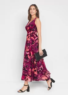 Stylowa długa sukienka z szeroką częścią spódnicową. Dopasowana w talii, z szeroką częścią spódnicową. Dł. ok. 136 cm we wszystkich rozmiarach. Można prać w pralce.