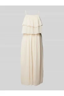 Długa sukienka damska VILA;Szyfon;Prosty krój;Model CHIFFON;Cienkie ramiączka;Volants;Plisy;Długość tyłu w rozmiarze 36: 132 cm;Szerokość klatki piersiowej w rozmiarze 36: 42 cm