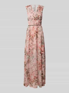 Długa sukienka damska GUESS;Szyfon;Prosty krój;Model ‘GILDA’;Dekolt w serek;Kwiatowy nadruk;Wiązany pasek;Plisy;Zamek błyskawiczny z tyłu;Długość tyłu w rozmiarze S: 129 cm;Szerokość klatki piersiowej w rozmiarze S: 35 cm;Długość rękawów