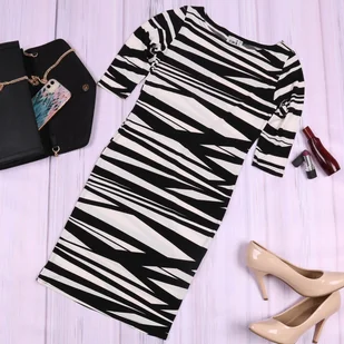 Sukienka wykonana jest z elastycznego i miłego w dotyku materiału. Czarno-biała sukienka przypominająca wzór zebry wyróżni cię w tłumie! Oryginalny, drapowan...