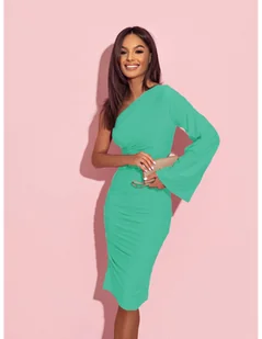 Dopasowana sukienka na jedno ramię EZALI - miętowa Podkreśl swój niepowtarzalny styl tą oryginalną sukienką, która zmysłowo odsłania ramię, dodając odrobinę tajemniczości i kobiecej siły do Twojego wyglądu. Tadopasowanakreacja wykonana z elastycznego materiału gwarantuje komfort noszenia i idealne dopasowanie do figury, podkreślając każdą jej linię. Długość midijest synonimem klasy i elegancji, sprawiając, że sukienka ta jest doskonała na szereg okazji, od rodzinnejwigilii po bankiet firmowy. Dobierającdodatki, postaw na minimalistyczną elegancję - delikatna srebrnabiżuteria, eleganckie szpilk