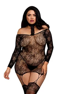Dreamgirl Damska sukienka Plus Size Lace Patterned Knit Garter Dress with Stockings Dessous, czarna, rozmiar uniwersalny