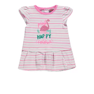 Dziewczęca sukienka z rękawkiem w stylu „motylków”, czyli zakryte ramionka i wycięte pod paszką. Sukienka jest w różowe paski, odcinana na biodrach. Sukienka z pewnością sprawdzi się dla każdej małej damy na upalne lato. Skład: 95% Bawełna 5% Elastan