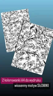 e-KOLOROWANKA A4 (motyw wiosenny z printu słowiki) do samodzielnego wydruku