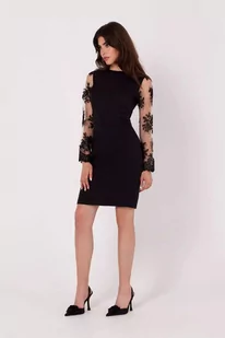 Ekskluzywna sukienka z koronkowymi rękawami (Beżowy, S)