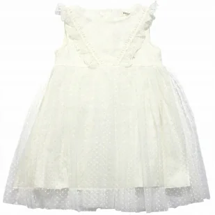 Elegancka sukienka Tiulowa z koronką w śmietankowym odcieniu na szerszych ramiączkach odcięta pod paszkami przód ozdobiony przeszytymi po ukosie koronkowymi ...