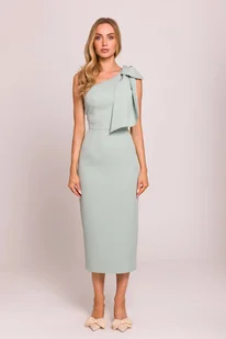 Ta efektownasukienka midi to kwintesencja kobiecej elegancji i klasy, zaprojektowana z myślą o kobietach, które pragną podkreślić swoją sylwetkę i wyglądać olśniewająco podczas wyjątkowych okazji. Asymetryczny krój z motywem na jedno ramię subtelnie eksponuje ramiona i szyję, dodając stylizacji delikatności i kobiecego wdzięku. Ozdobna kokarda wprowadza element wyrafinowania, czyniąc sukienkę niepowtarzalną i szykowną. Dopasowany, ołówkowy fason doskonale akcentuje kobiece kształty, podkreślając talię i nadając sylwetce harmonijnych proporcji. Mocno zaznaczona talia optycznie wysmukla, dzięki