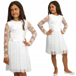 Elegancka sukienka tiulowa odcięta w pasie (gumka) w białym kolorze góra tiulowa z kwiatowym haftem (może być inny deseń niż na zdjęciu obok) od ramion w dół...