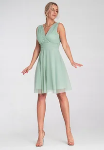 Subtelna jasnozielona sukienka mini wykonana z delikatnego tiulu to idealna propozycja na wesela, przyjęcia i inne wyjątkowe okazje. Kopertowy dekolt oraz ma...
