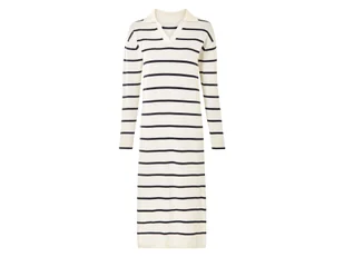 esmara® Sukienka midi damska z bawełną organiczną Opis produktu z bawełną organiczną przyjemnie miękka dzianina luźny krój z obniżoną linią ramion ściągacze przy rękawach i u dołu z rozcięciami po bokach beżowy/granatowy/paski: z otwartym kołnierzykiem kent modna długość 7/8 beżowy/czerwony/paski: z okrągłym dekoltem długość do kolan Cechy produktu table{width:100%;}td{padding-right: 30px; padding: 0.5rem; border-bottom: 0.0625rem solid #e3e4e5;} tr: nth-child(odd) {background-color: #F2F3F4;} Kolory: beżowy/granatowy/paski, beżowy/czerwony/paski Wzór:
