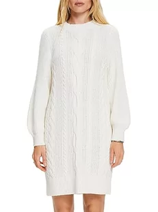 ESPRIT Sukienka z dzianiny warkoczowej z mieszanki wełny, Off White, M