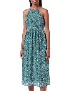 faina Damska sukienka midi z szyfonu 19226415, zielono-biała, L, Zielony biały, L