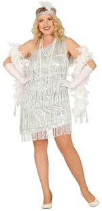 FIESTAS GUIRCA Charleston Damski Srebrny Kostium - Sukienka Gatsby z lat 20. XX wieku i opaska na głowę - Kostium Charleston Damski Rozmiar XL 46-48