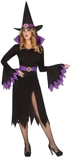 FIESTAS GUIRCA Kostium Mistycznej Czarownicy dla Kobiet - Zawiera Fioletowy i Czarny Kapelusz Czarownicy, Sukienka z Rozcięciem Nogi i Paskiem - Kostiumy na Halloween dla Kobiet Rozmiar S