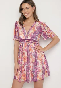 Fioletowa Sukienka w Kwiatowy Wzór Rinovea