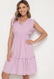 Fioletowa Sukienka z Wiskozą o Rozkloszowanym Kroju Bez Rękawów Folerose
