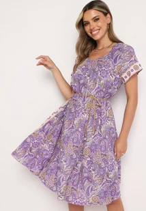 Fioletowa Wiskozowa Sukienka o Rozkloszowanym Kroju w Stylu Boho Melnea