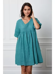 Fleur de Lin Lniana sukienka "Etsy" w kolorze turkusowym