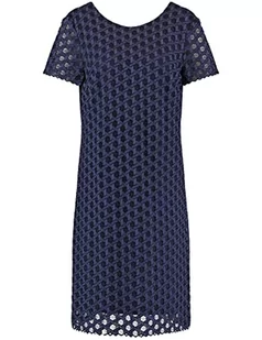 Gerry Weber Damska sukienka koronkowa z półprzezroczystą nakładką, krótki rękaw, sukienka koronkowa, jednokolorowa, krótka, niebieski (Blueberry), 48