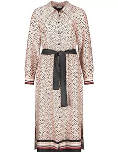 Gerry Weber Damska sukienka midi w kropki z paskiem w talię, długi rękaw, mankiety, sukienka midi, w kropki, długość do łydek, Ecru/biały/czarny nadruk, 44