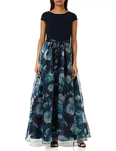 Gina Bacconi Damska sukienka maxi z organzy i dżerseju, z satynowym wiązaniem, kokardą, koktajl, Granatowy/wielokolorowy, 46