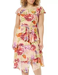 Gina Bacconi Damska szyfonowa sukienka z falbanką w kwiaty z samodzielnego wiązania, koktajlowa, różowo-zielona, 18, Różowy/zielony, 44