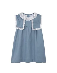 Gocco Lniana sukienka z haftowanymi paskami, Ciemny Turkusowy, 4-5 lat
