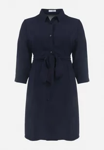 Granatowa Rozkloszowana Mini Sukienka Zapinana na Guziki z Materiałowym Paskiem Vleco