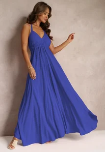 Granatowa Rozkloszowana Sukienka Bawełniana z Wiązaniem na Szyi Panethea