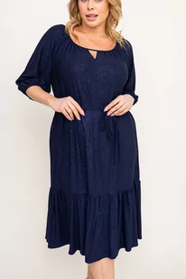 Little Mistress Damska granatowa sukienka midi z siateczki, granatowy, 42