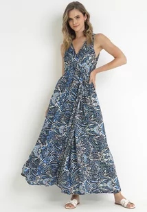 Granatowo-Czarna Sukienka Maxi o Kopertowym Kroju z Wiązaniem z Wiskozy Wilna