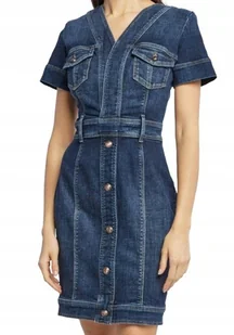 GUESS JEANSOWA SUKIENKA Z KRÓTKIM RĘKAWEM I DEKOLTEM SEREK S GXB