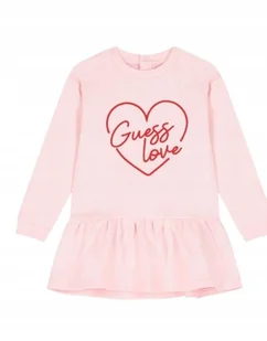 GUESS RÓŻOWA SUKIENKA DZIEWCZĘCA Z DŁUGIM RĘKAWEM I HAFTEM 64-70 GNA