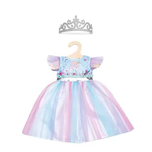 Heless 1130 – sukienka dla lalek ze wzorem wróżki i jednorożca, ze srebrną koroną, rozmiar 28 – 35 cm