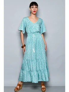 usha FESTIVAL Damska sukienka z krótkim rękawem 15926606, turkusowa biała wełna, XL, Turkusowy, wełniany biały, XL