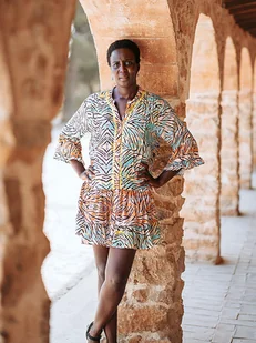 Isla Bonita by SIGRIS Sukienka w kolorze pomarańczowo-kremowo-turkusowym