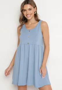 Jasnoniebieska Sukienka o Rozkloszowanym Kroju na Szerokich Ramiączkach z Guzikami Jenovira